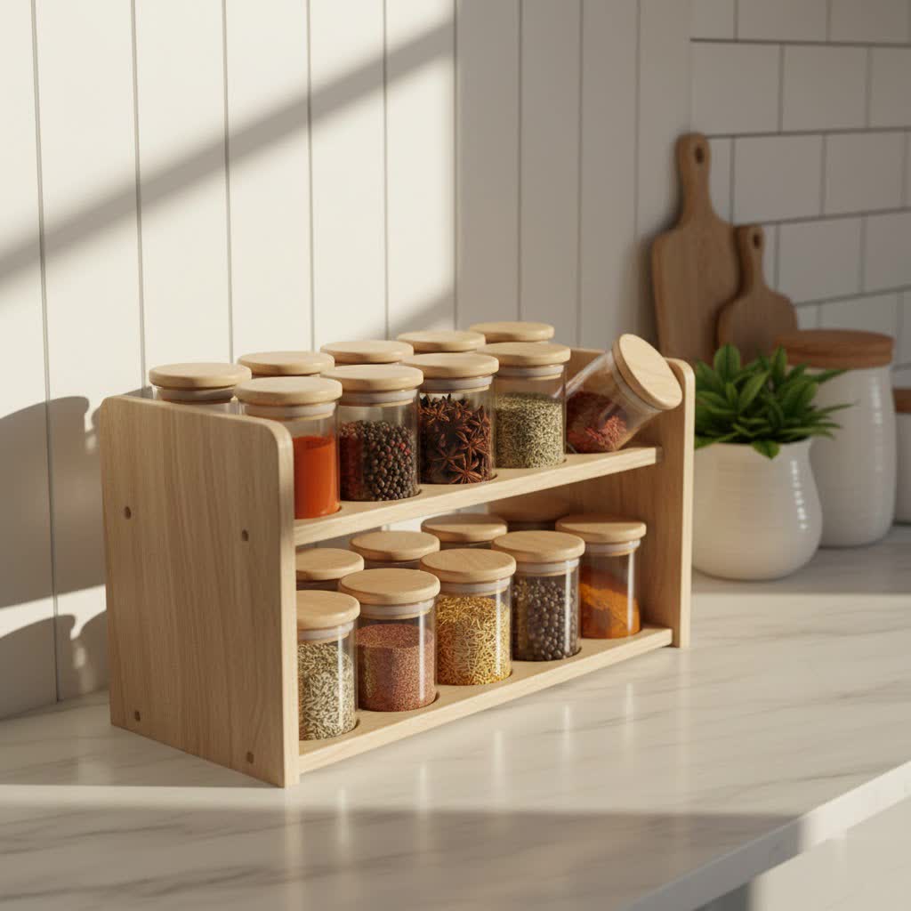 • Tiered Shelves/Risels: These allow you to see spices on higher levels without having to remove those in front, preventing forgotten jars at the back of the cupboard.
